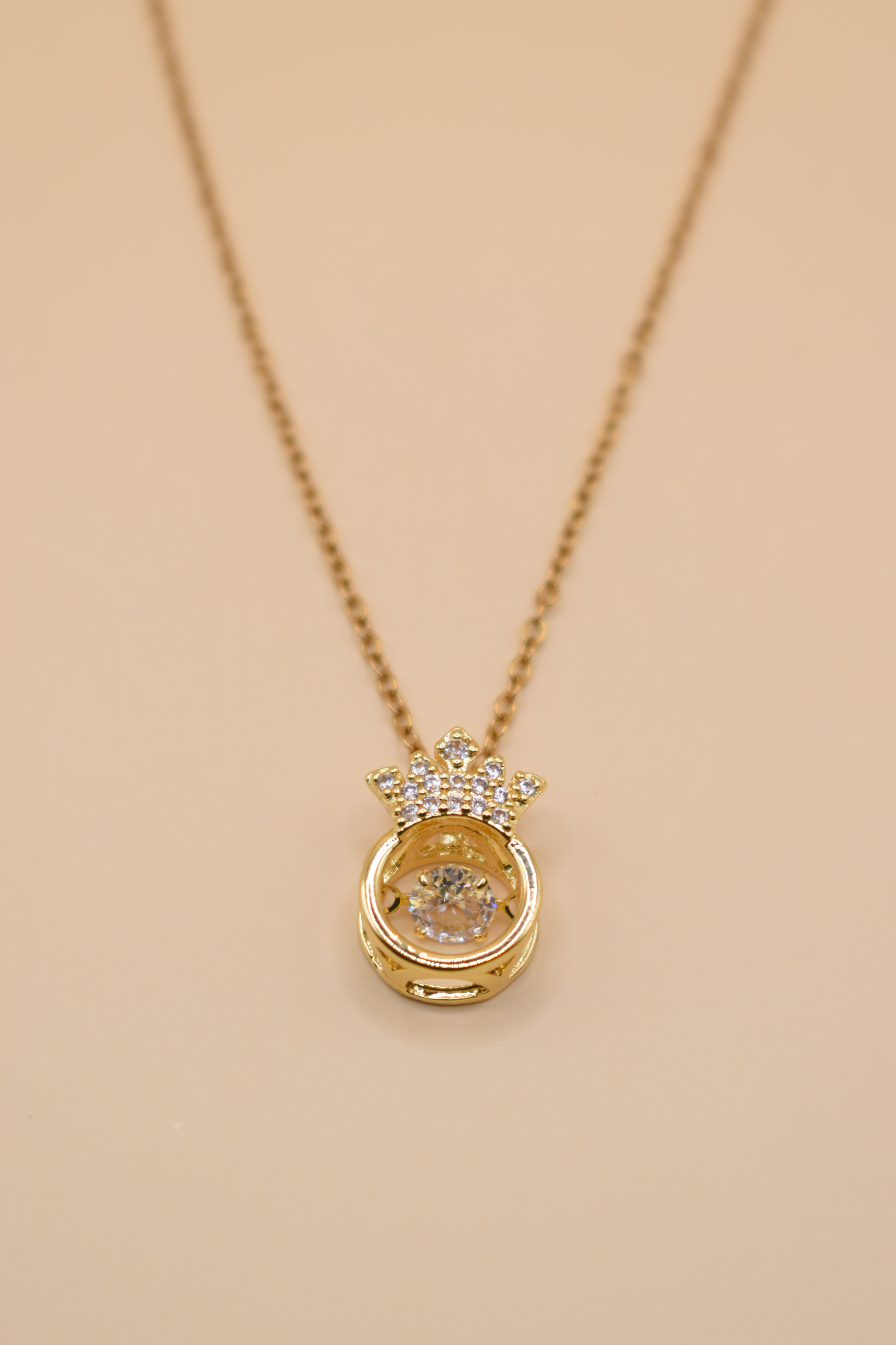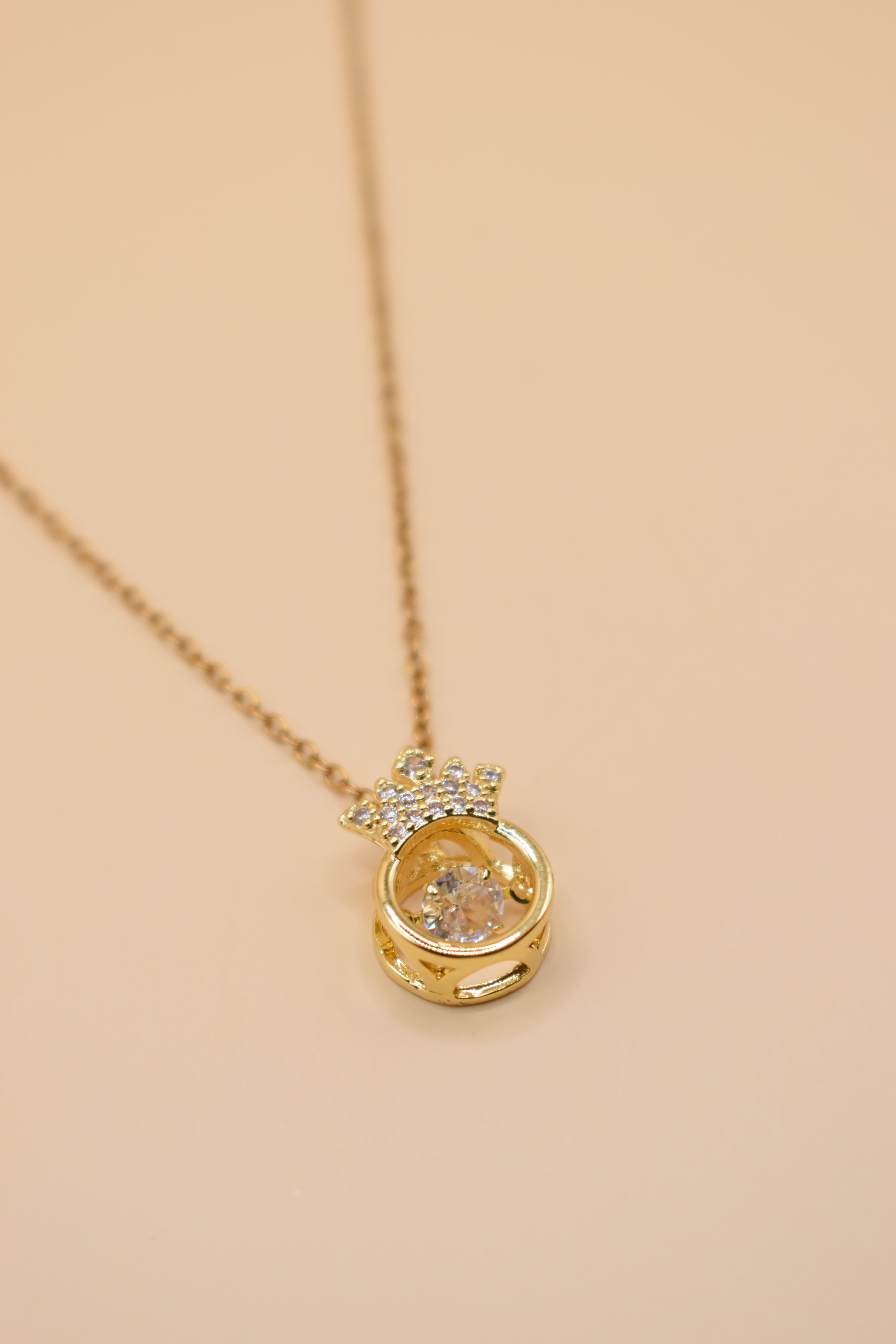 This crown necklace features a precise gold finish with a polished surface. The gold crown pendant sits centered on a fine chain, keeping the design balanced and defined.