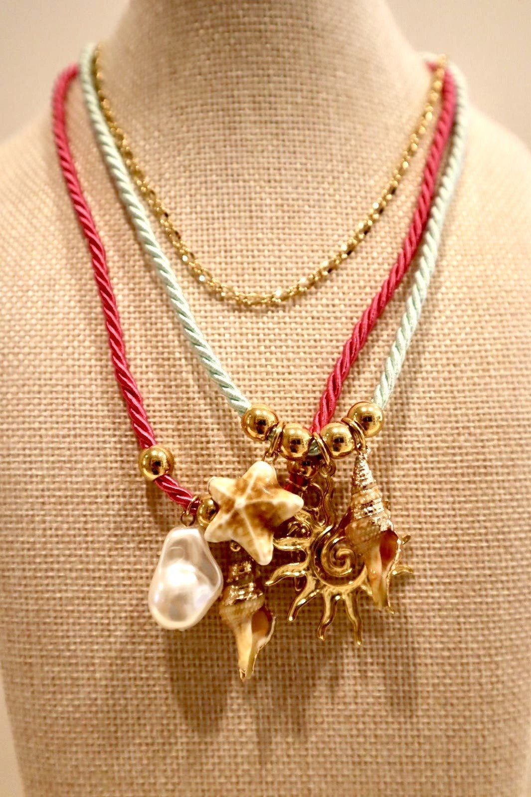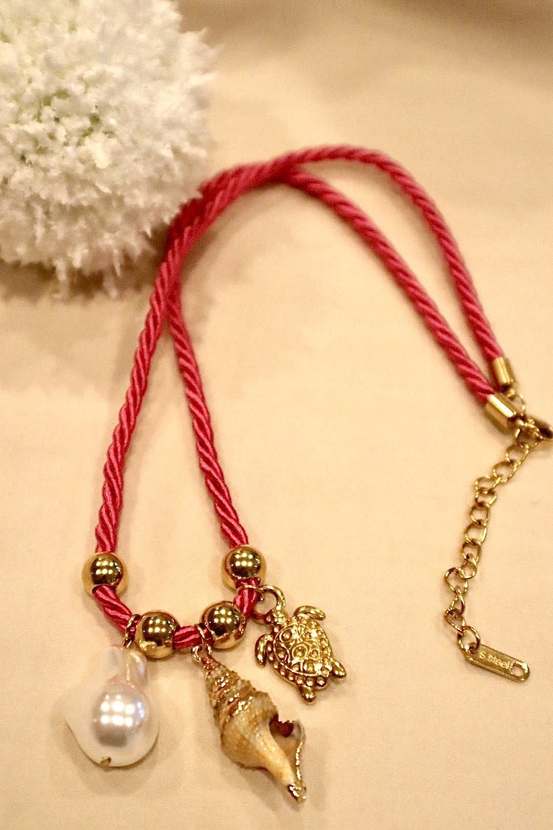 A playful blend of ocean-inspired charm and soft pink rope, this necklace adds a whimsical yet stylish touch to any outfit.