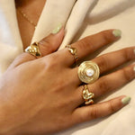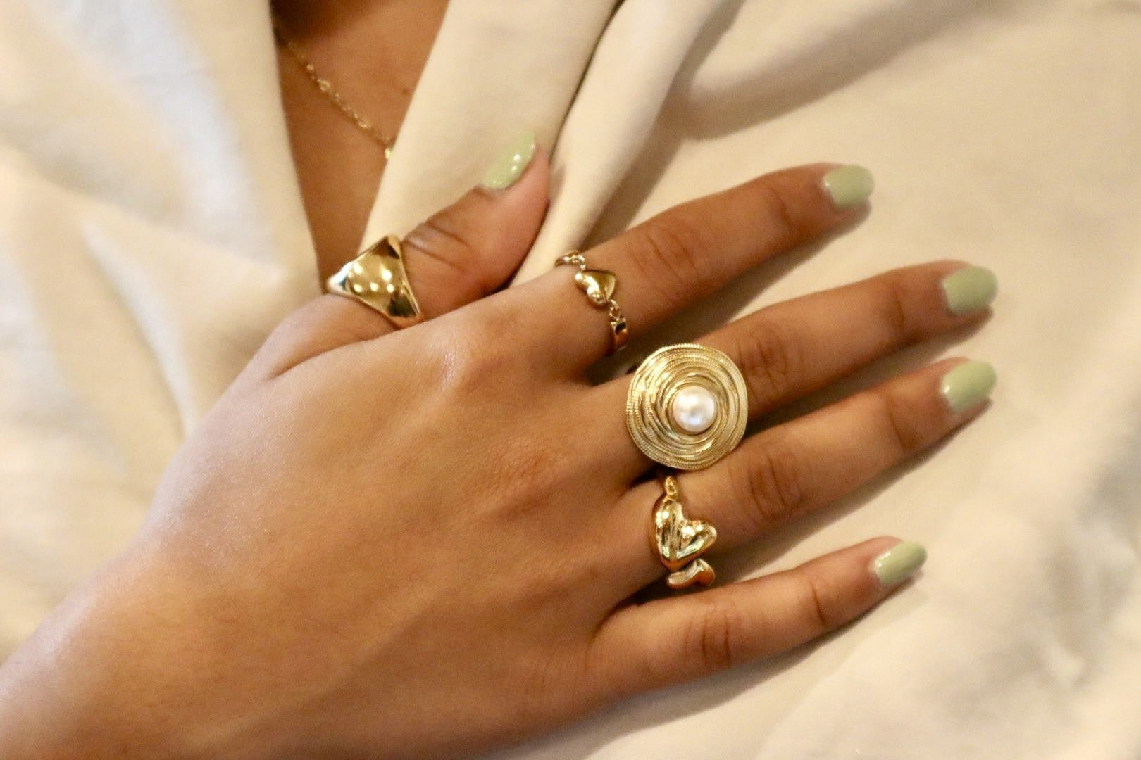 A bold blend of classic elegance and modern style. Featuring a radiant pearl set on a striking band, this ring adds sophistication and confidence to any look.